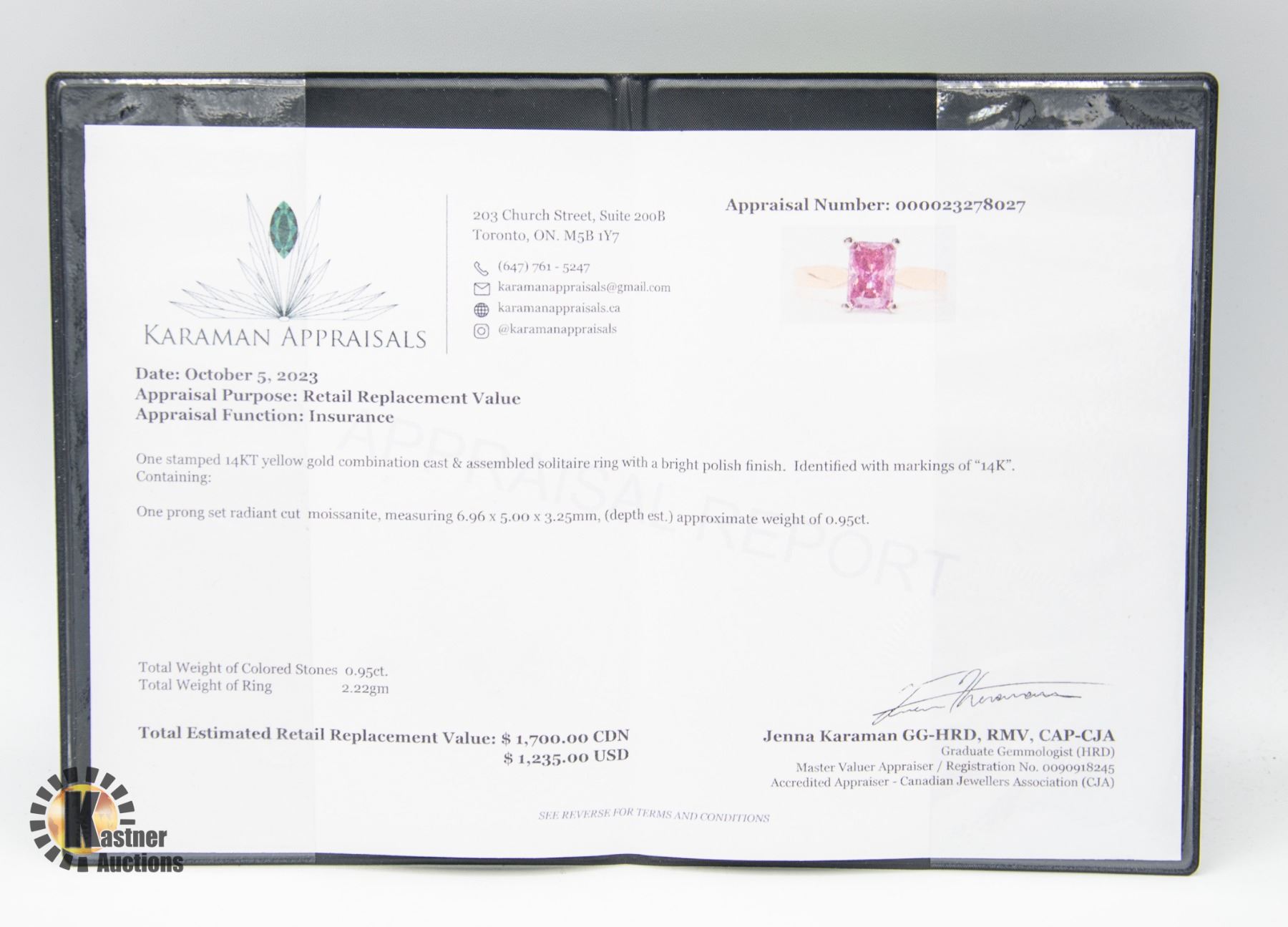 Kastner Auctions Limited assumes no responsibility for any liability once a bid is accepted. It is recommended that purchasers arrange insurance for their purchases in advance.