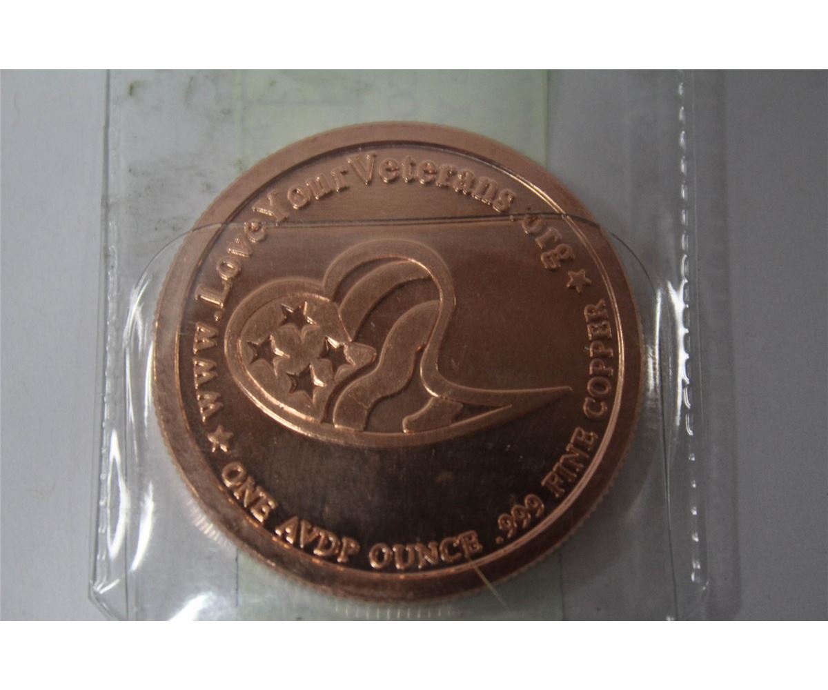 0.999 COPPER COIN ON CHOICE: "LOVE YOUR VETERANS"