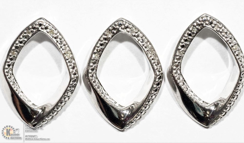 2-NT43-SET OF THREE STERLING SILVER DIAMOND LOOP PENDANTS
