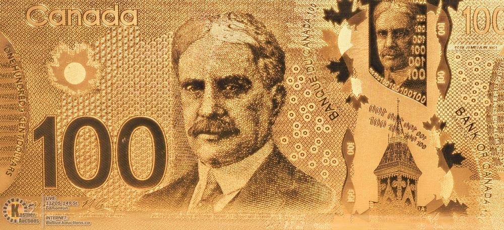 8-NT43-24K GOLD FOIL CANADIAN $100.00 DOLLAR BILL. NOT LEGAL CURRENCY