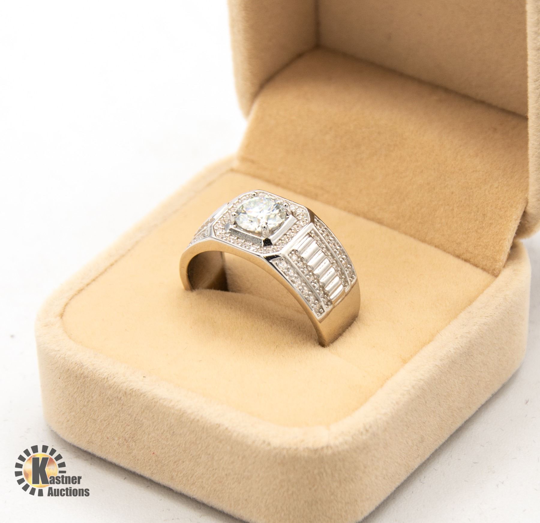 84 ROUND CUT BRILLIANT CUBIC ZIRCONIA SET IN A SQUARE HALO WITH MORE DOWN EACH SIDE OF THE RING WEIGHING A TOTAL 0.40 CT SET IN 925 SILVER RING SIZE 10 **ALL ITEMS MUST BE REMOVED BY 5PM SATURDAY, MAY 11THTH 2024. ALL REMAINING ITEMS WILL BE SUBJECT TO A $6.00 PER DAY STORAGE CHARGE. ANY ITEMS REMAINING AFTER MONDAY, MAY 27TH 2024 WILL BE CONSIDERED FORFEITED. NO REFUNDS WILL BE ISSUED FOR FORFEITED ITEMS. TO SCHEDULE A PICK UP APPOINTMENT CLICK HERE