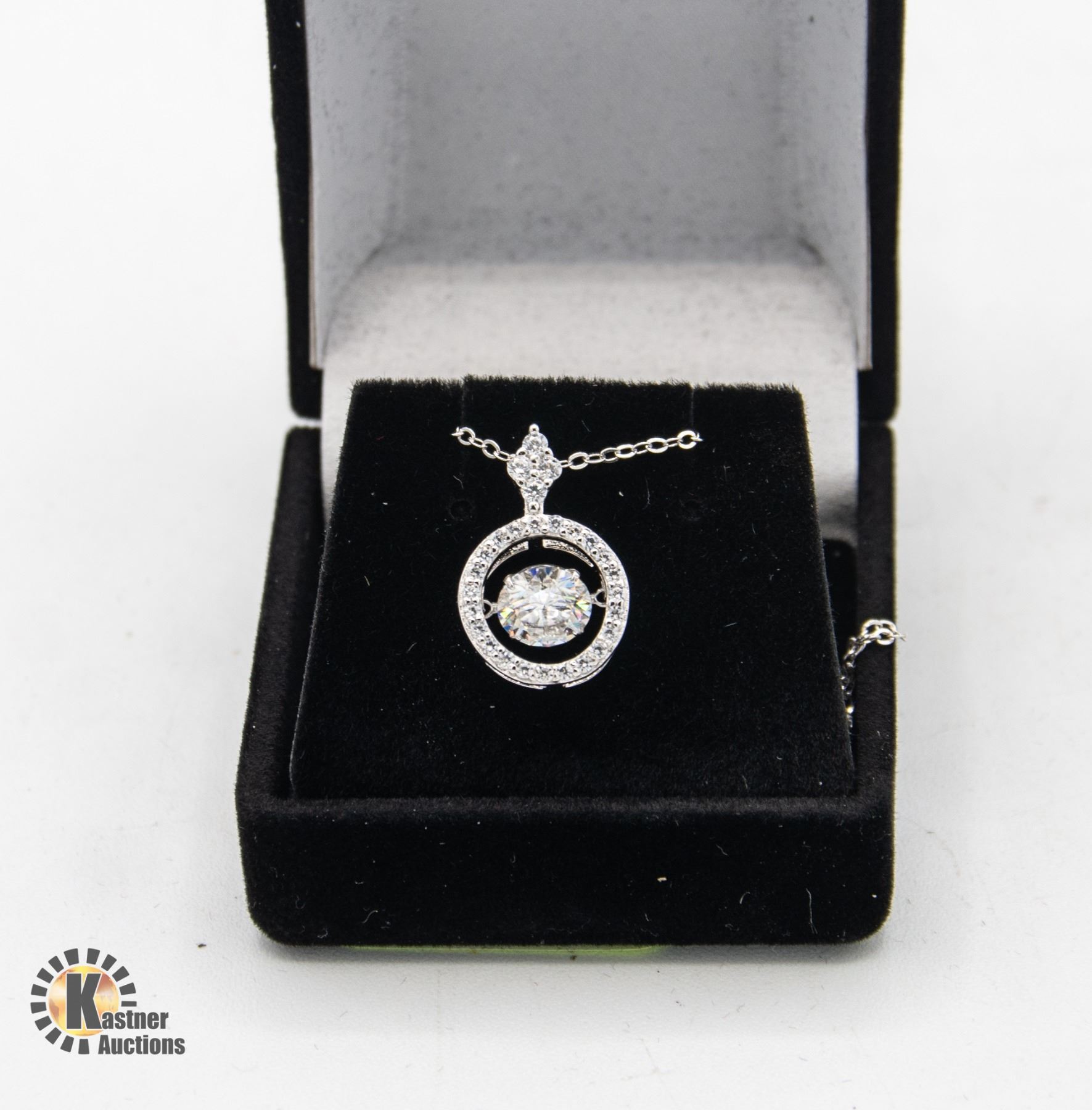 OF ROUND HALO THAT IS FLOATING WITH 27 CUBIC ZIRCONIUM SURROUNDING THE CENTER SET IN STERLING SILVER **ALL ITEMS MUST BE REMOVED BY 5PM SATURDAY, MARCH 2ND 2024. ALL REMAINING ITEMS WILL BE SUBJECT TO A $6.00 PER DAY STORAGE CHARGE. ANY ITEMS REMAINING AFTER MONDAY, MARCH 18TH, 2023 WILL BE CONSIDERED FORFEITED. NO REFUNDS WILL BE ISSUED FOR FORFEITED ITEMS. TO SCHEDULE A PICK UP APPOINTMENT CLICK HERE