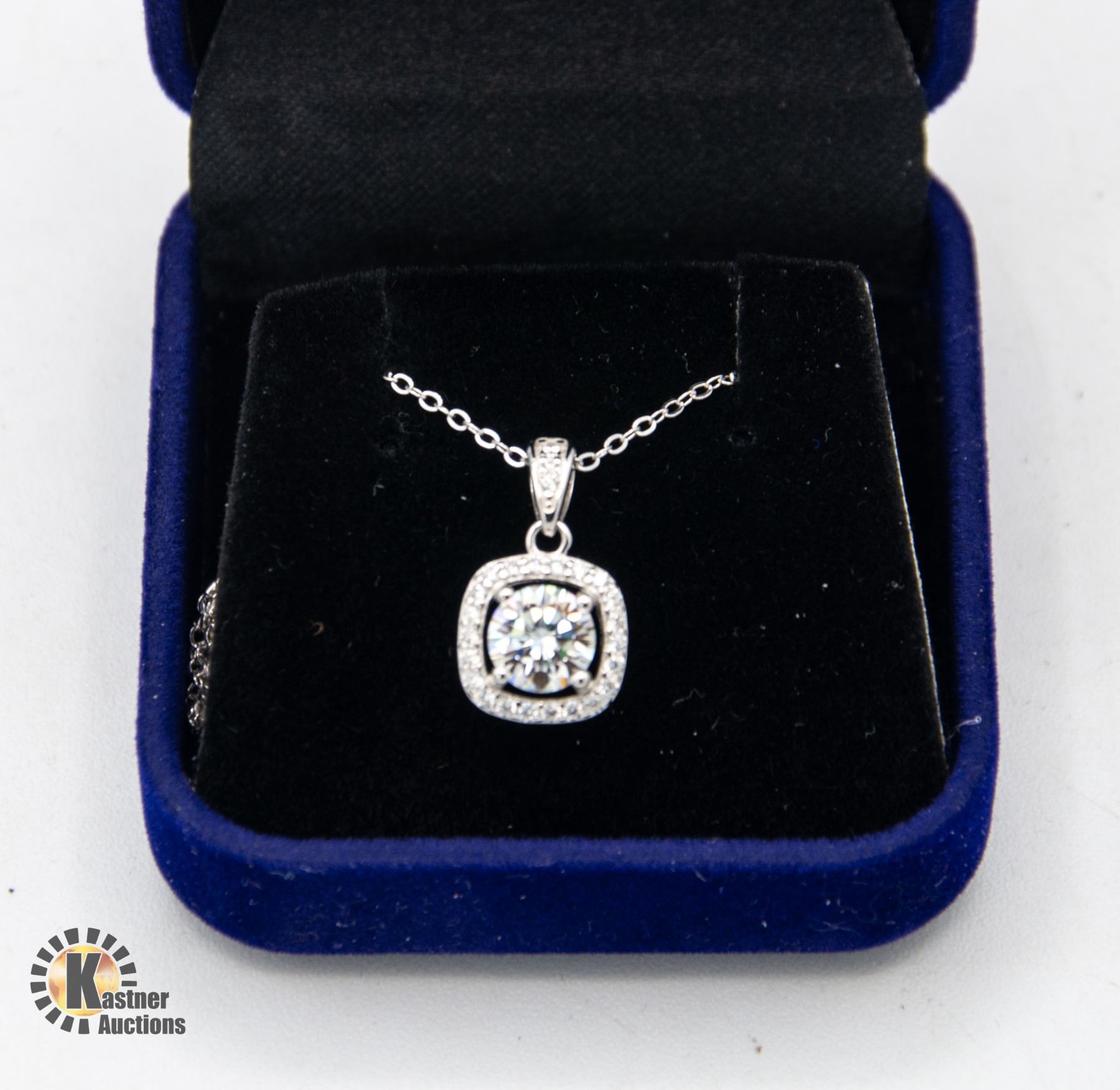 SQUARE HALO WITH 25 ROUND CUBIC ZIRCONIA WEIGHING A TOTAL 0.25 CT SET IN STERLING SILVER RETAIL VALUE $775.00