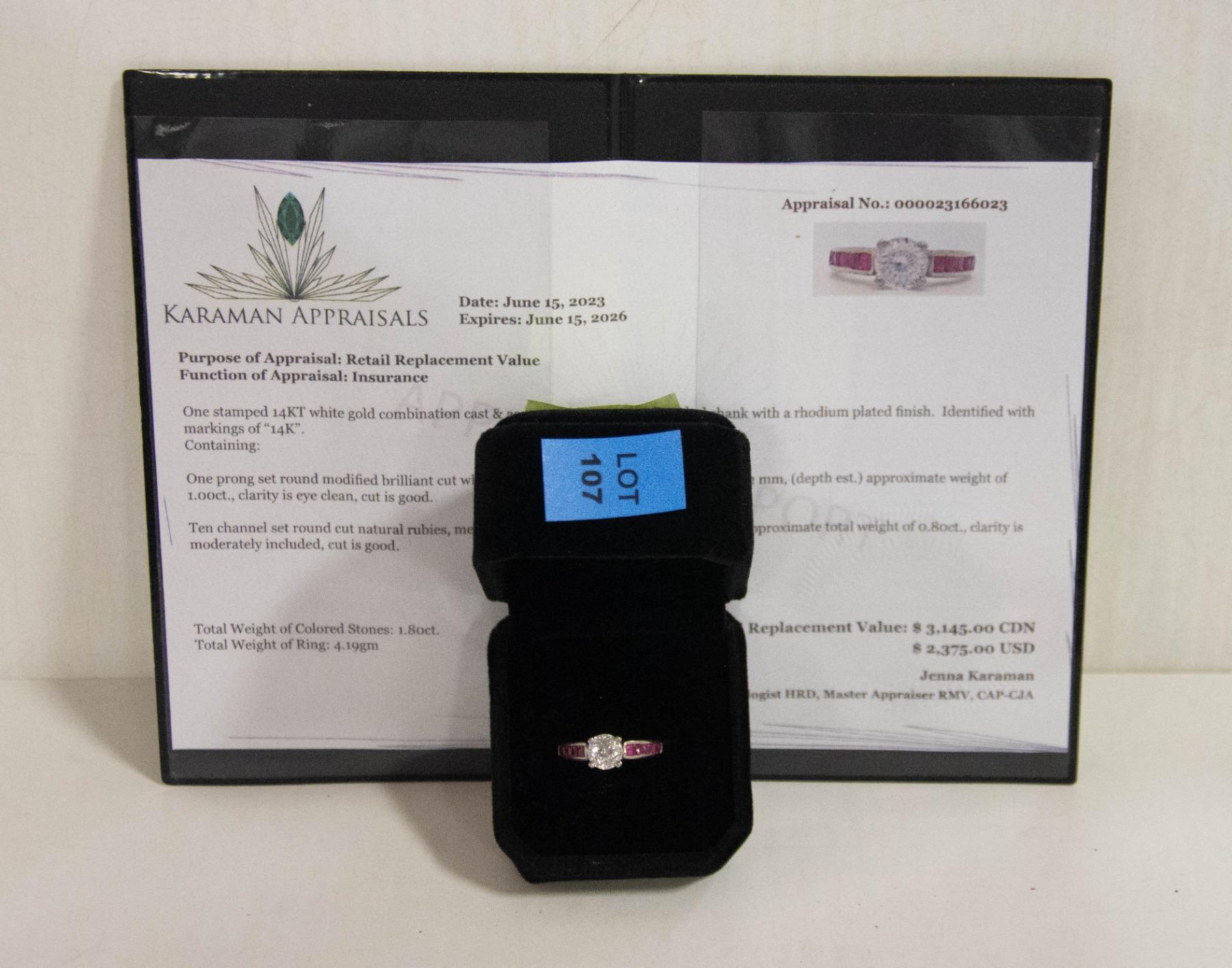 14 KT WHITE GOLD WITH 10 CHANNEL SET NATURAL RUBIES APPRAISED VALUE $3,145.00 **ALL ITEMS MUST BE REMOVED BY 5PM SATURDAY, JULY 29TH 2023. ALL REMAINING ITEMS WILL BE SUBJECT TO A $6.00 PER DAY STORAGE CHARGE. ANY ITEMS REMAINING AFTER MONDAY, AUGUST 14TH, 2023 WILL BE CONSIDERED FORFEITED. NO REFUNDS WILL BE ISSUED FOR FORFEITED ITEMS. TO SCHEDULE A PICK UP APPOINTMENT CLICK HERE