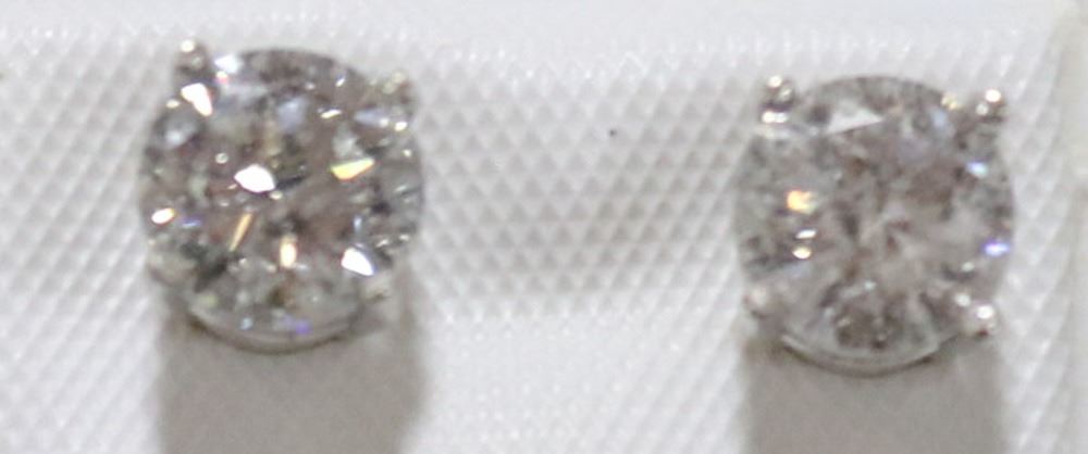 WITH LOCAL APPRAISAL, TWO ROUND BRILLIANT CUT DIAMONDS, CLARITY GRADE I 2-3 (LASER CLARITY ENHANCED), COLOR GRADE F, CUT GRADE GOOD, CARAT TOTAL WEIGHT 1.50 CARATS, TOTAL WEIGHT 1.00 GRAMS. SUGGESTED INSURANCE COVERAGE $5,000.00. JEWELLERY