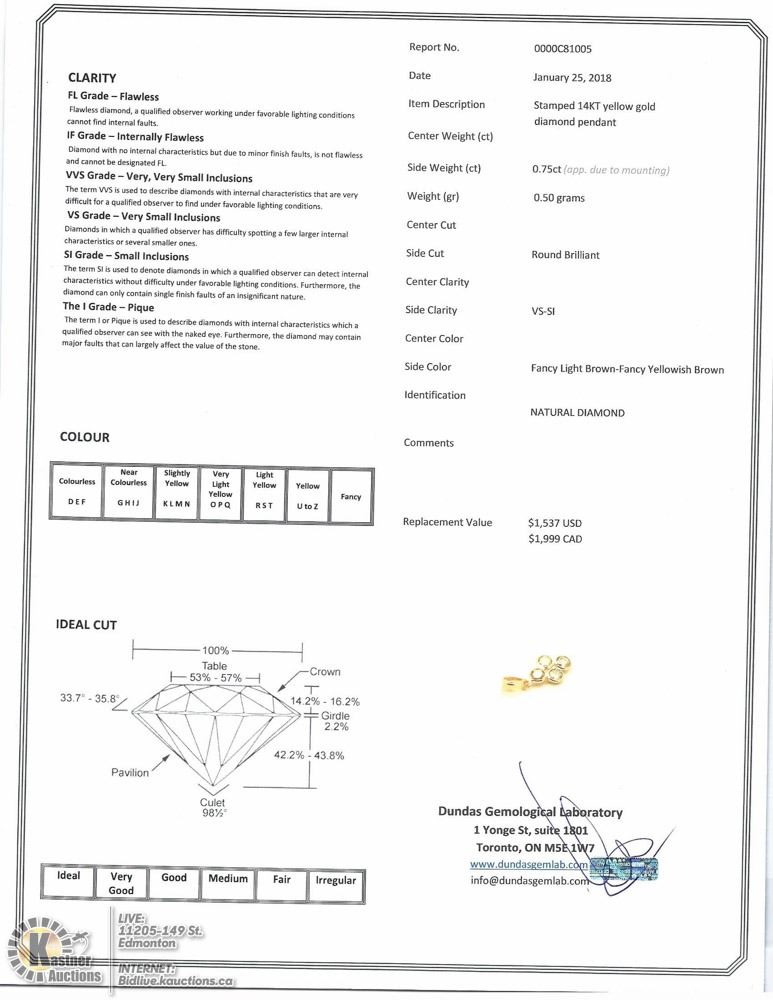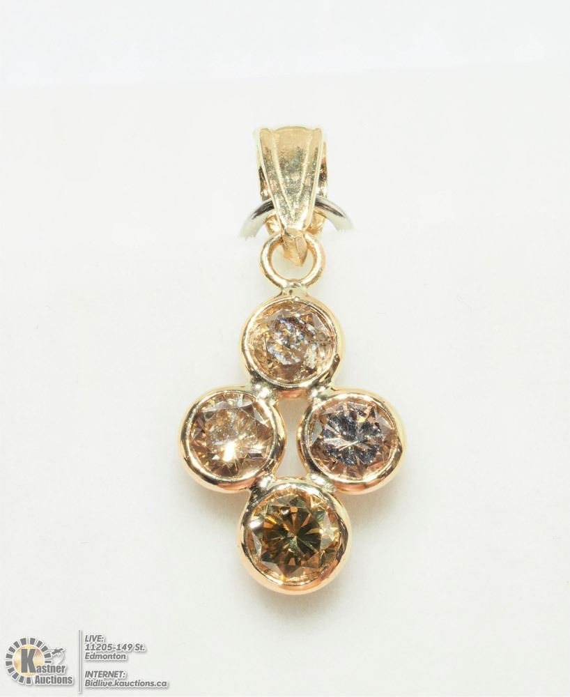 1 - MM78 - 14K YELLOW GOLD FANCY COLOR DIAMONDS (0.75CT) PENDANT, W/ COA, SUGGESTED REPLACEMENT VALUE $1999.00. JEWELLERY