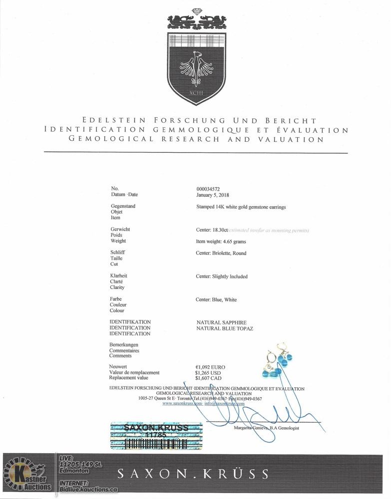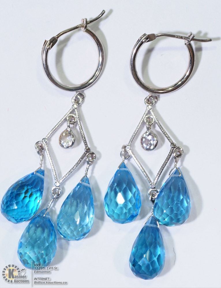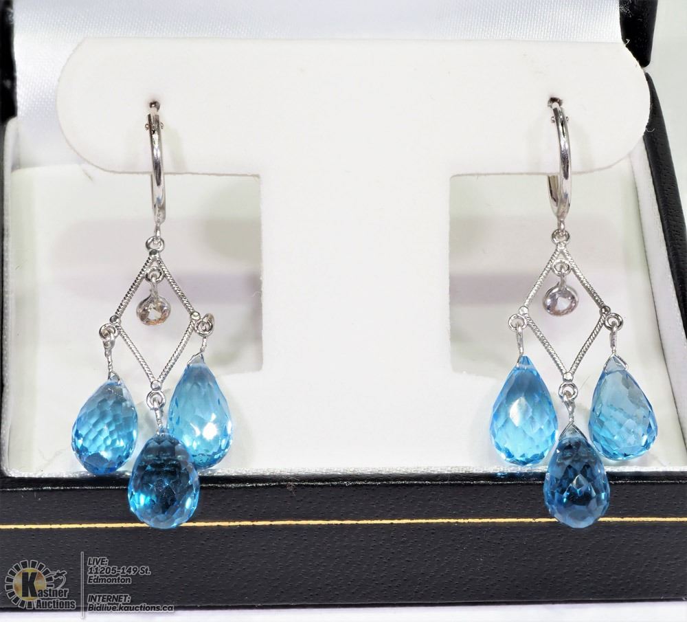 01 - GS91 - 14KT WHITE GOLD SAPPHIRE & BLUE TOPAZ (18.30CT) CHANDELIER STYLE EARRINGS W/COA. SUGGESTED REPLACEMENT VALUE $1,607.00. JEWELLERY