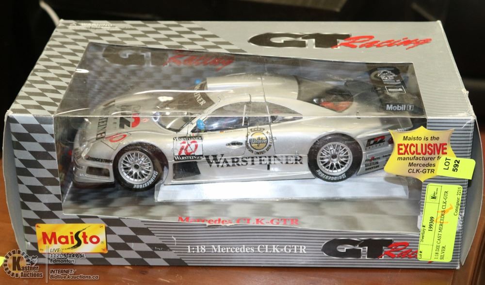 1:18 DIE CAST MERCEDES CLK-GTR SILVER.