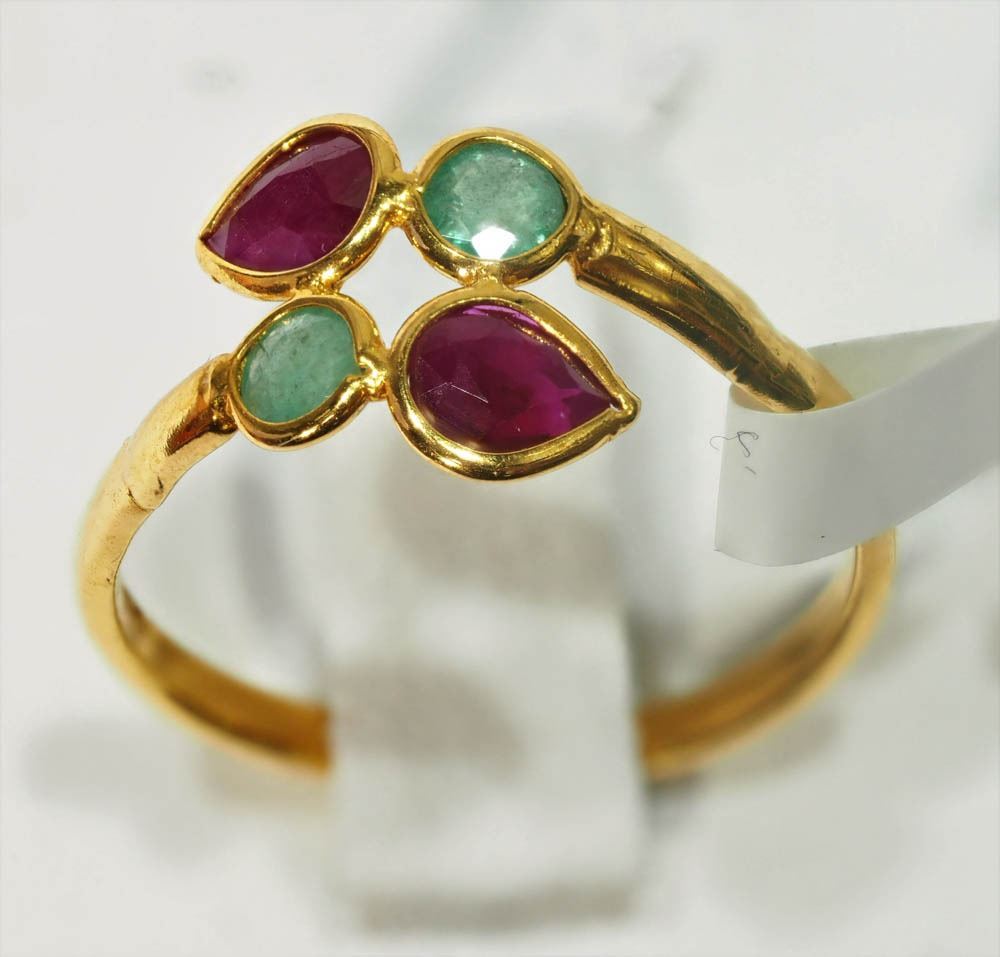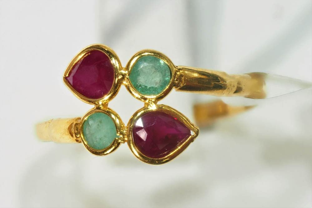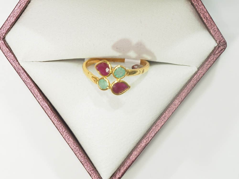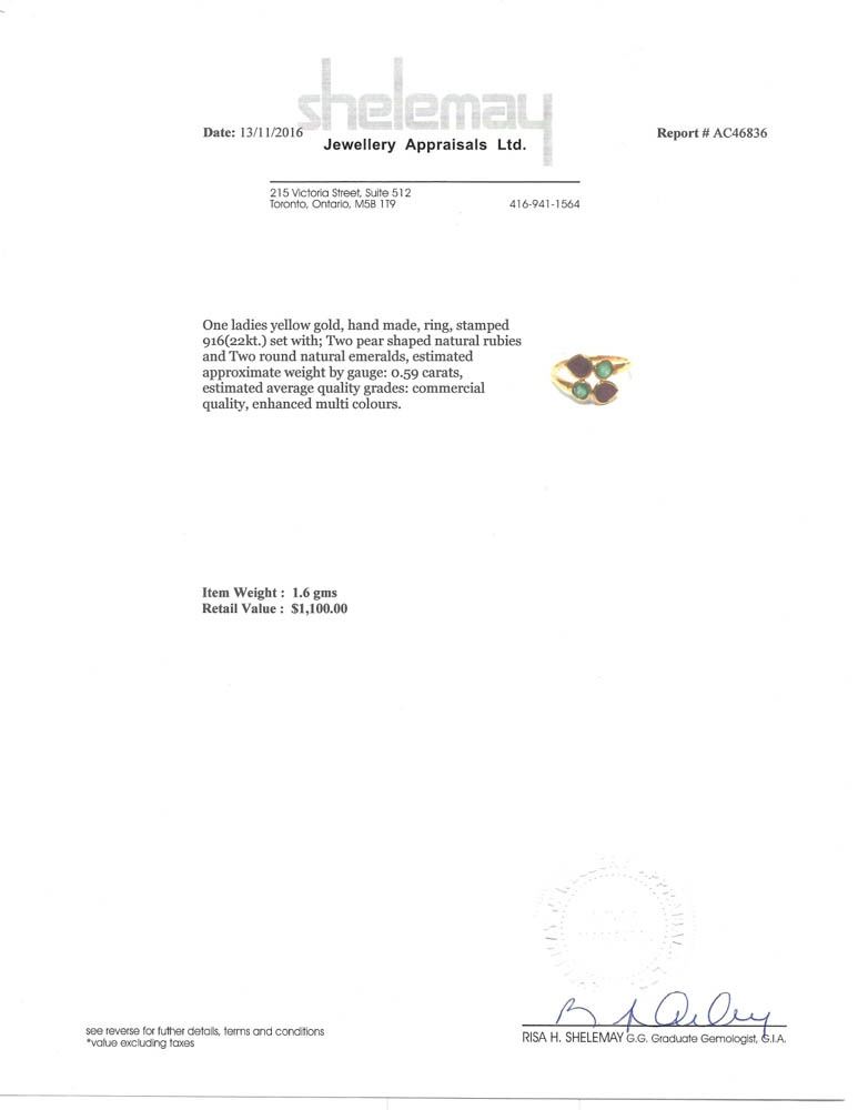 22KT YELLOW GOLD RUBIES & EMERALDS (0.59CT) RING W/ COA - SIZE 5- SUGGESTED REPLACEMENT VALUE $1,100.00