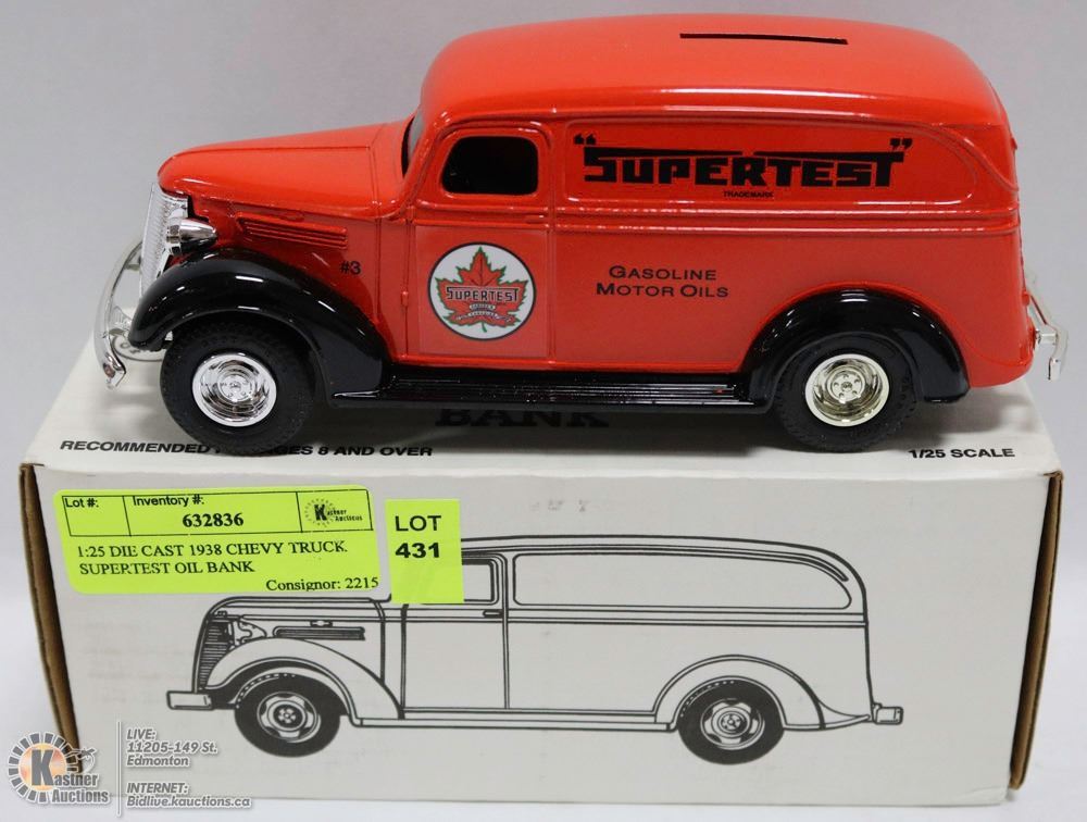 1:25 DIE CAST 1938 CHEVY TRUCK SUPERTEST OIL BANK