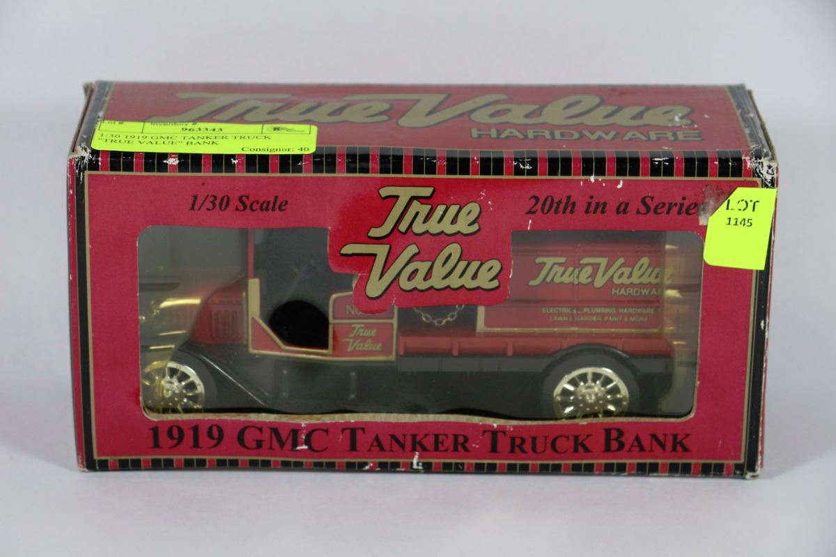 1:30 1919 GMC TANKER TRUCK "TRUE VALUE" BANK