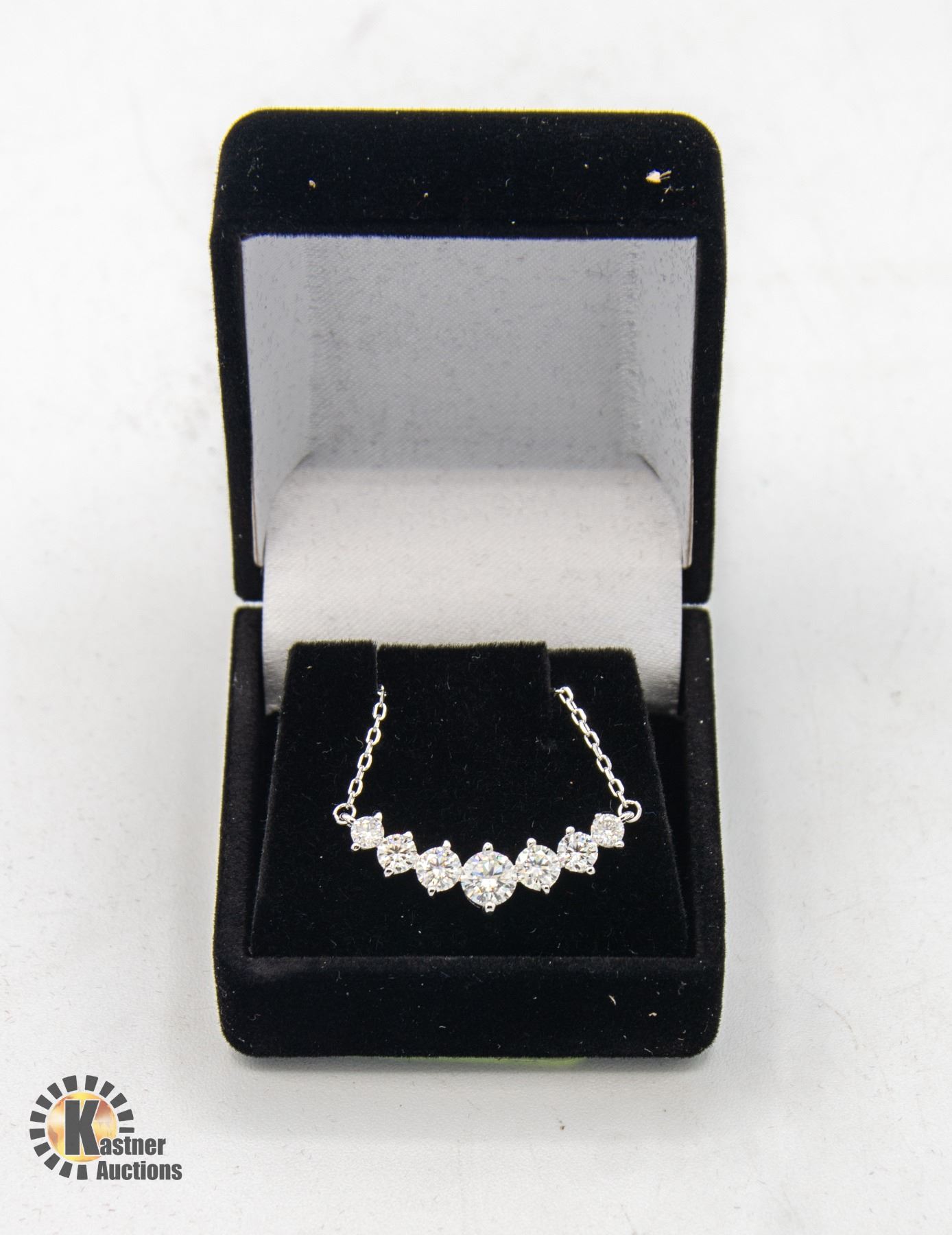 WITH A 0.50 CENTER GRADUATING DOWN 3 MOISSANITES ON EITHER SIDE SET IN STERLING SILVER PENDANT **ALL ITEMS MUST BE REMOVED BY 5PM SATURDAY, MARCH 16TH 2024. ALL REMAINING ITEMS WILL BE SUBJECT TO A $6.00 PER DAY STORAGE CHARGE. ANY ITEMS REMAINING AFTER MONDAY, APRIL 8TH, 2023 WILL BE CONSIDERED FORFEITED. NO REFUNDS WILL BE ISSUED FOR FORFEITED ITEMS. TO SCHEDULE A PICK UP APPOINTMENT CLICK HERE