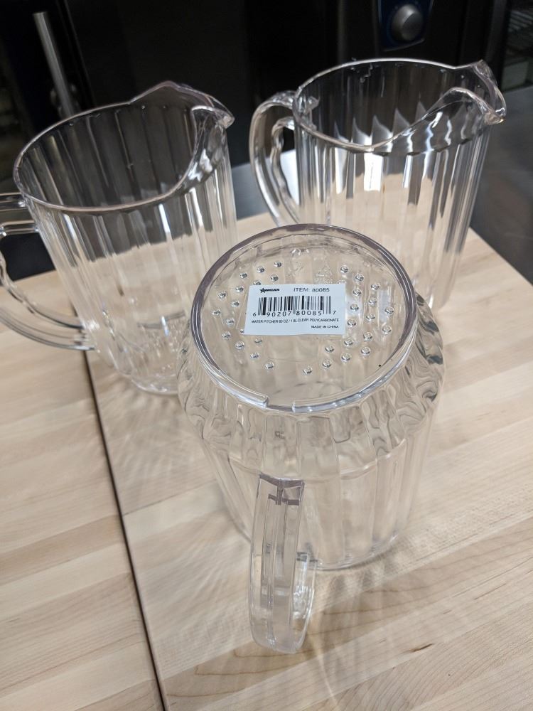 NEW -1.8L CLEAR POLYCARB PITCHERS, OMCAN 80085 - LOT OF 3 - (AS THEY COME IN CATALOGUE ORDER)