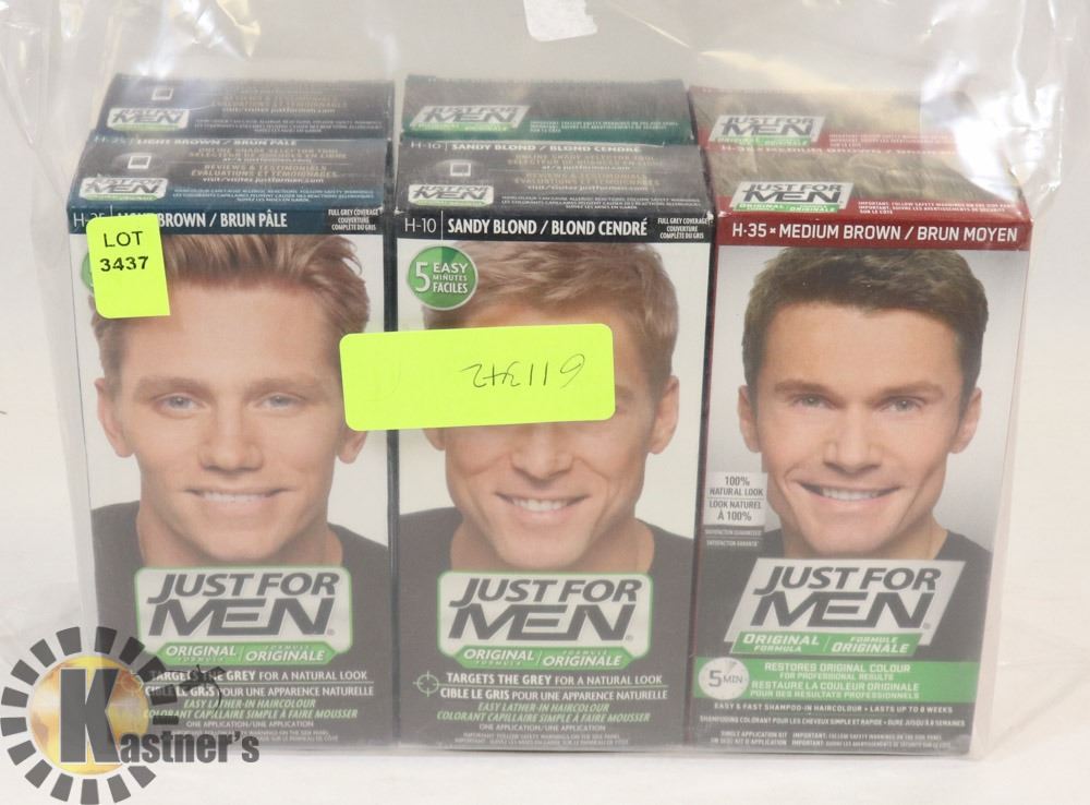 1 BAG OF 6 ASSORTED JUST FOR MEN HAIR DIE
