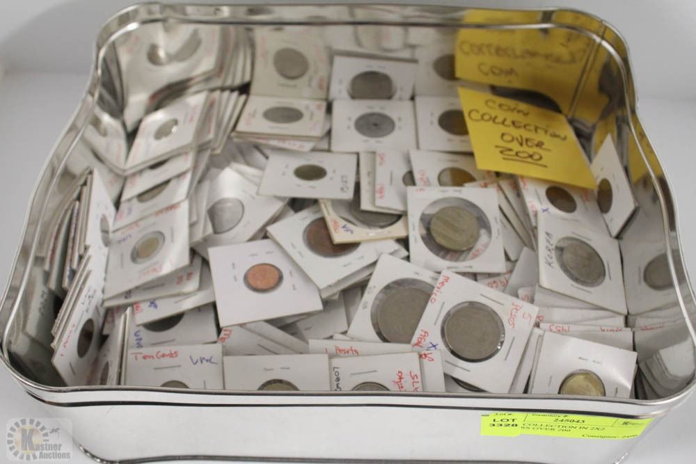MANY COINS IN 2 INCH BY 2 INCH HOLDERS. SEVERAL HAVE GRADING. OVER TWO HUNDRED.