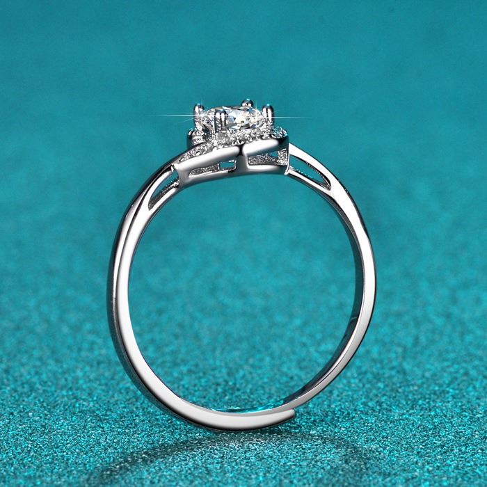 OPEN ADJUSTABLE SIZE TWIRL STYLE RING WITH VVS D COLOR GRADE CENTER MOISSANITE STONE. COMES IN BOX WITH ITS CERTIFICATE. X003 **ALL ITEMS MUST BE REMOVED BY 5PM SATURDAY, FEBRUARY 24TH 2024. ALL REMAINING ITEMS WILL BE SUBJECT TO A $6.00 PER DAY STORAGE CHARGE. ANY ITEMS REMAINING AFTER MONDAY, MARCH 11TH, 2023 WILL BE CONSIDERED FORFEITED. NO REFUNDS WILL BE ISSUED FOR FORFEITED ITEMS. TO SCHEDULE A PICK UP APPOINTMENT CLICK HERE