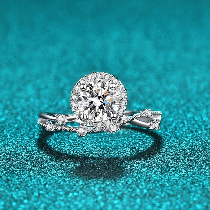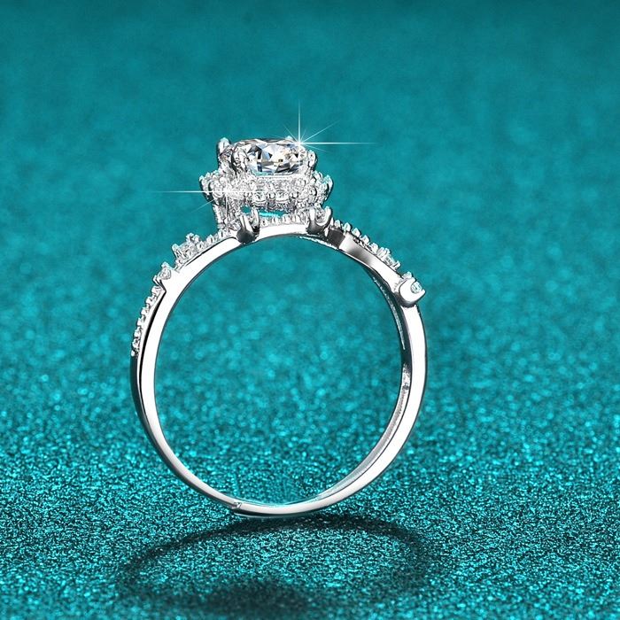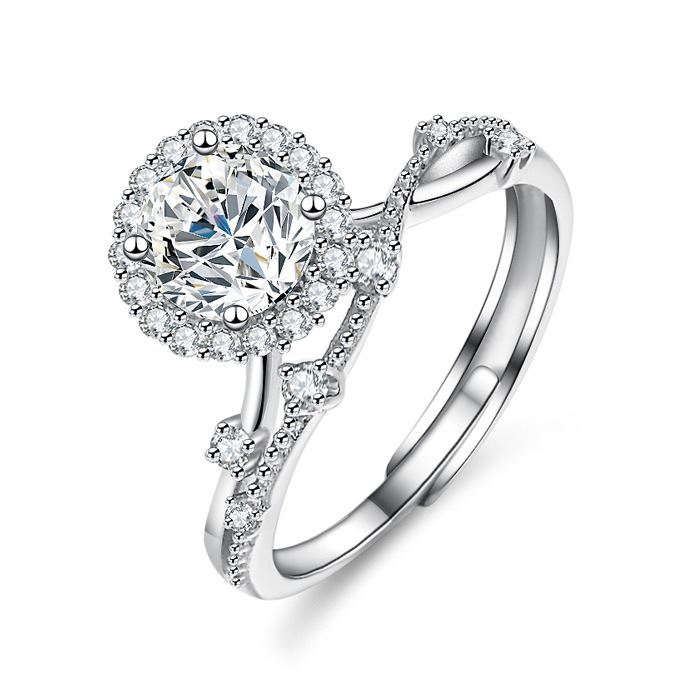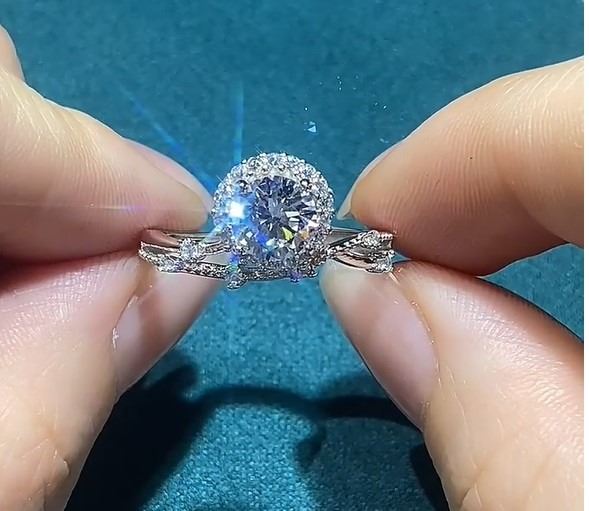 OPEN ADJUSTABLE SIZE, 6-CLAW BRIGHT STAR STYLE RING WITH VVS D COLOR GRADE CENTER MOISSANITE STONE. COMES IN BOX WITH ITS CERTIFICATE. X035