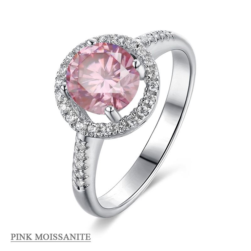 SZ 7.5 4 CLAWS RING WITH VVS D COLOR GRADE CENTRAL MOISSANITE STONE. COMES WITH ITS BOX. M16A-PINK (COLOR BRIGHTNESS CAN SHOW DIFFERENTLY IN IMAGES)