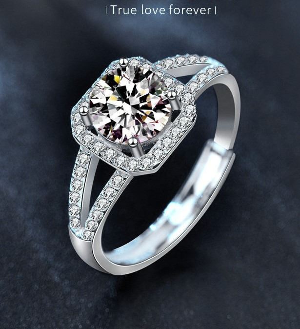 OPEN ADJUSTIBLE SIZE LUXURY RING WITH VVS D COLOR GRADE MOISSANITE STONE. COMES WITH ITS GRA CERTIFICATE. XJZ082