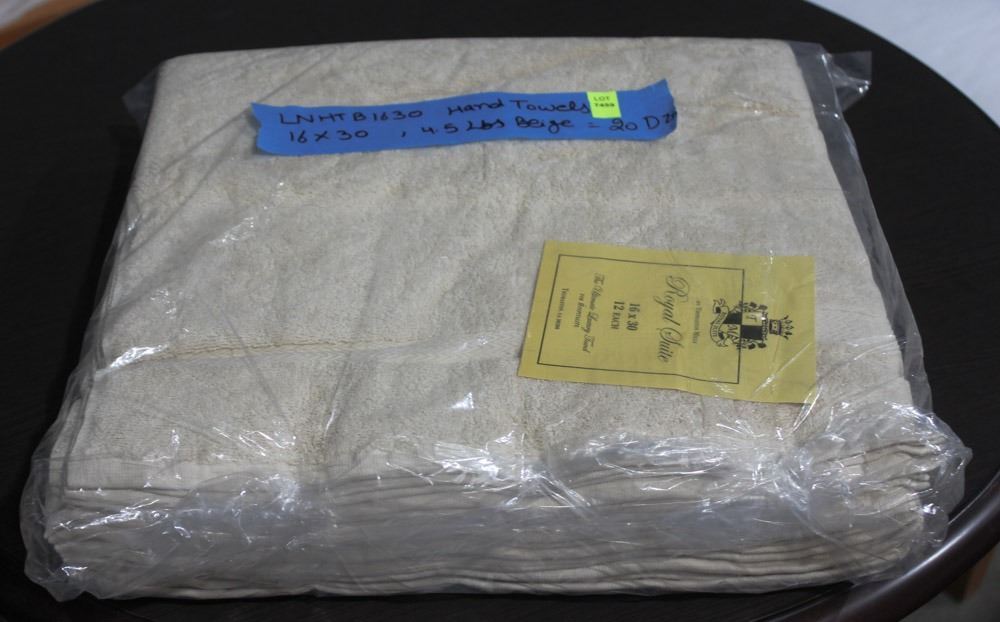 1 DOZEN OF BEIGE HOTEL HAND TOWELS 16'' X 30''