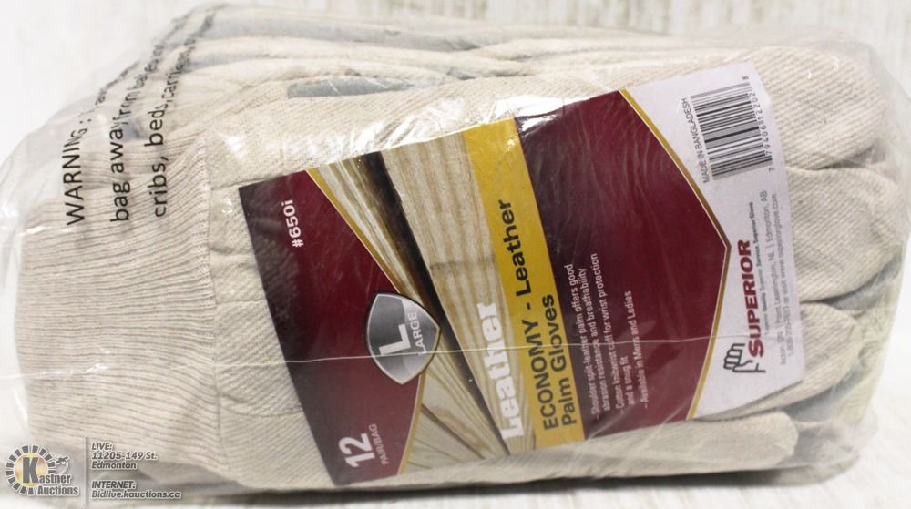 1 DOZEN SZ LARGE LEATHER/FABRIC WORK GLOVES