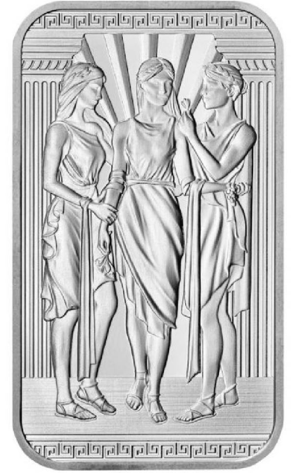 1-OZ 999.9 SILVER THREE GRACES BAR