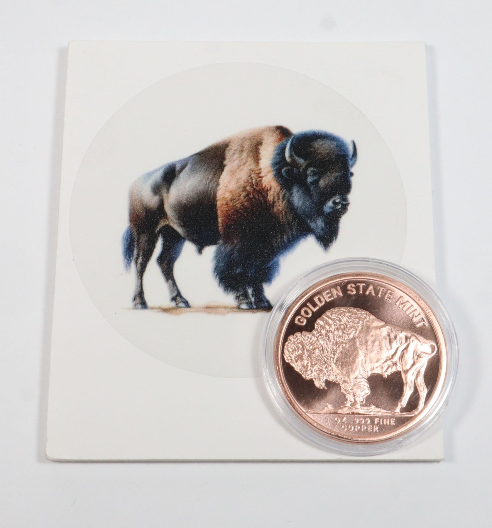 1-OZ BUFFALO COPPER ROUND WITH FOAM BOARD CARD
