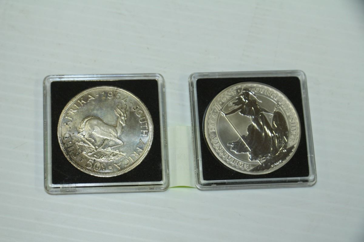 1 OZ FINE SILVER COIN + SOUTH AFRICA 50 CENT COIN