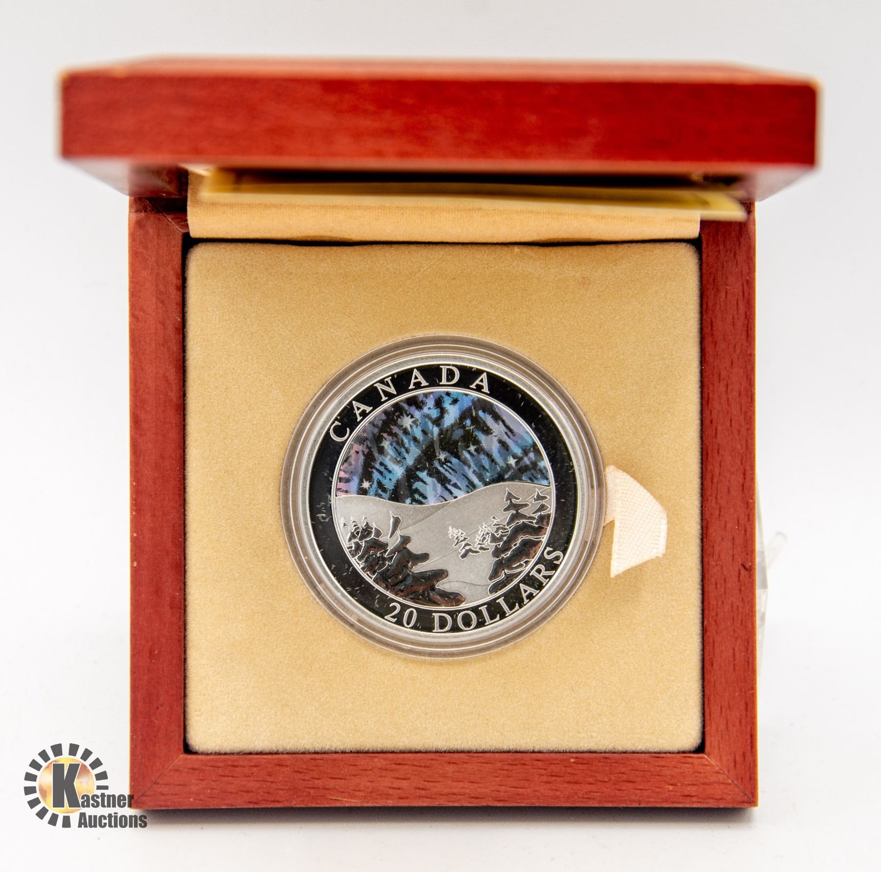 1 OZ STERLING SILVER NORTHERN LIGHTS $20 COIN