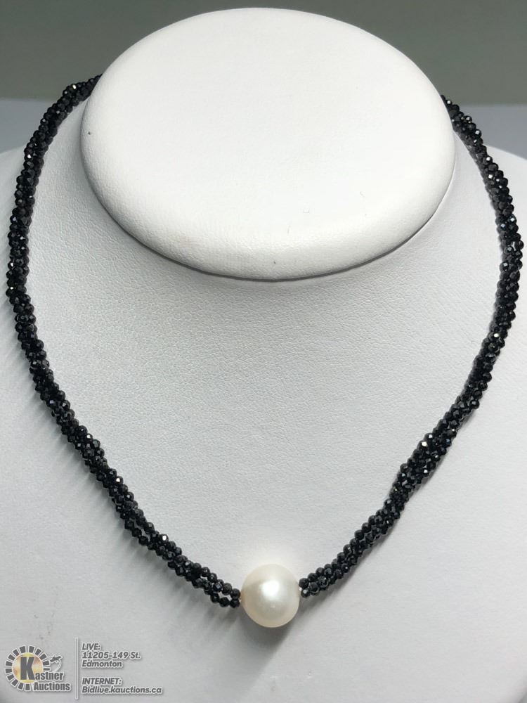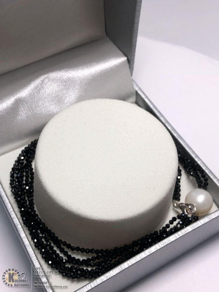 1-JP122 - STERLING SILVER NATURAL SPINEL AND FRESHWATER PEARL 16" NECKLACE. JEWELLERY