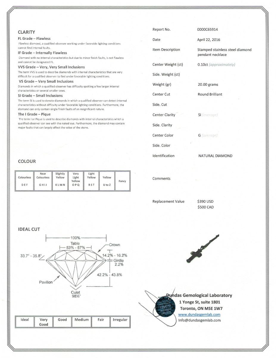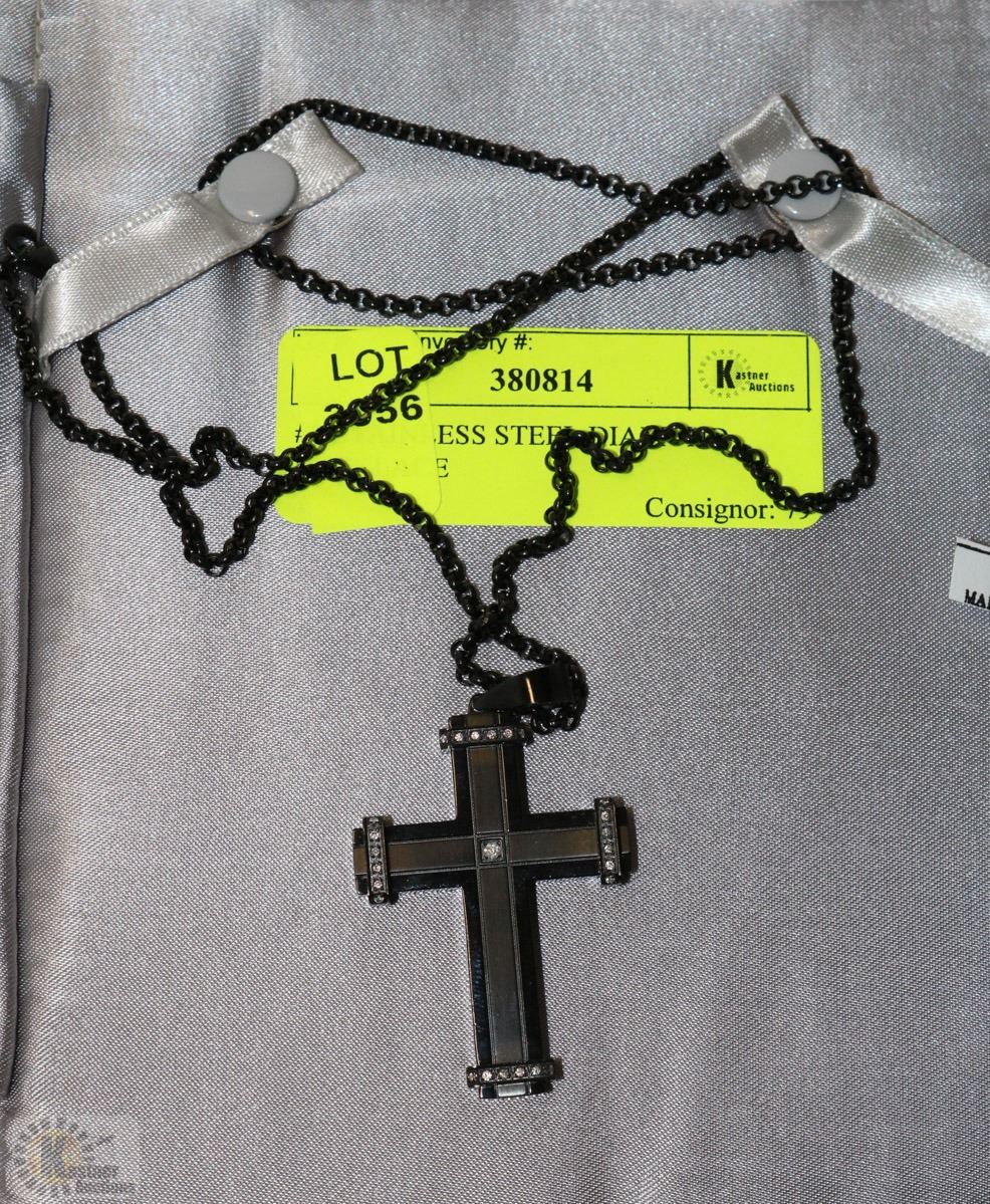 STAINLESS STEEL DIAMOND(0.10CT) BLACK CROSS PENDANT NECKLACE. W/ COA- SUGGESTED REPLACEMENT VALUE $500.00