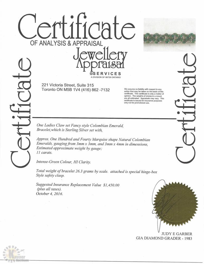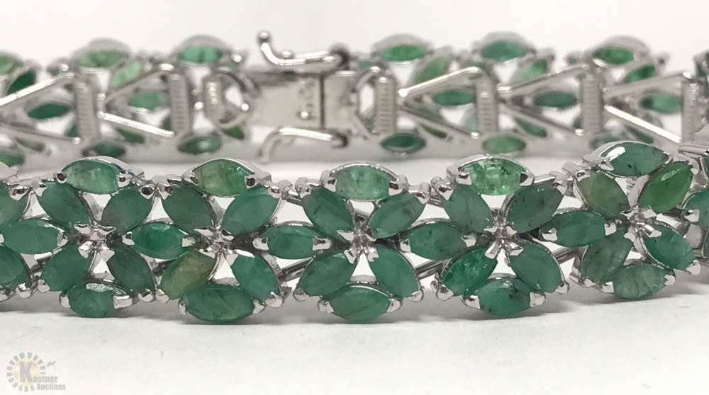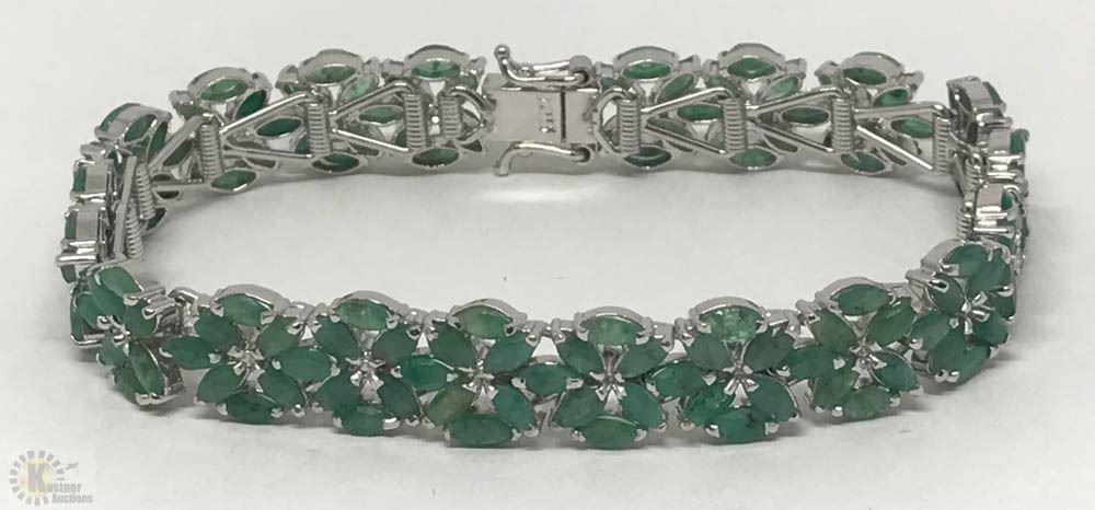 STERLING SILVER EMERALD(11.0CT) BRACELET. W/ COA - SUGGESTED REPLACEMENT VALUE $1,450.00