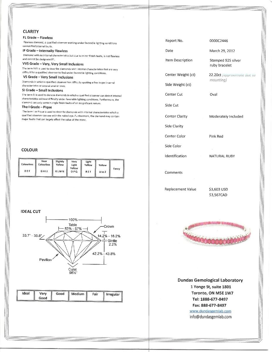 STERLING SILVER RUBY(22.20CT) BANGLE. W/ COA SUGGESTED REPLACEMENT VALUE $3,567.00