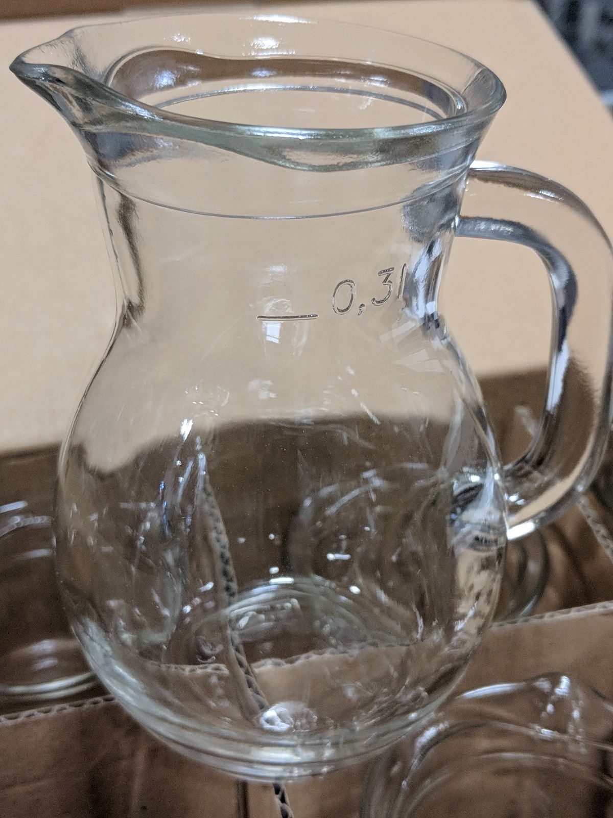 K642-J629 NEW 10-1/4OZ/300ML GLASS PITCHERS, ARCOROC "BYSTRO" FJ001 - LOT OF 12 (2 BOXES)