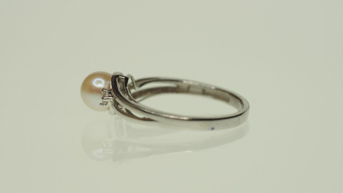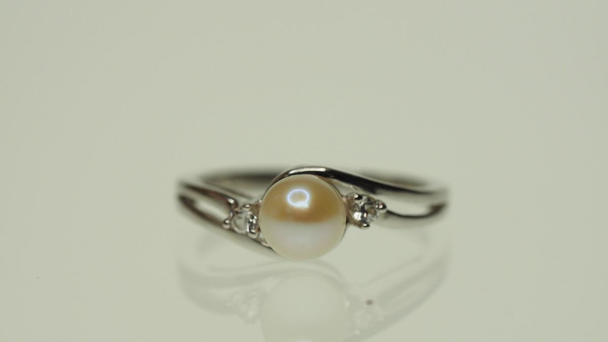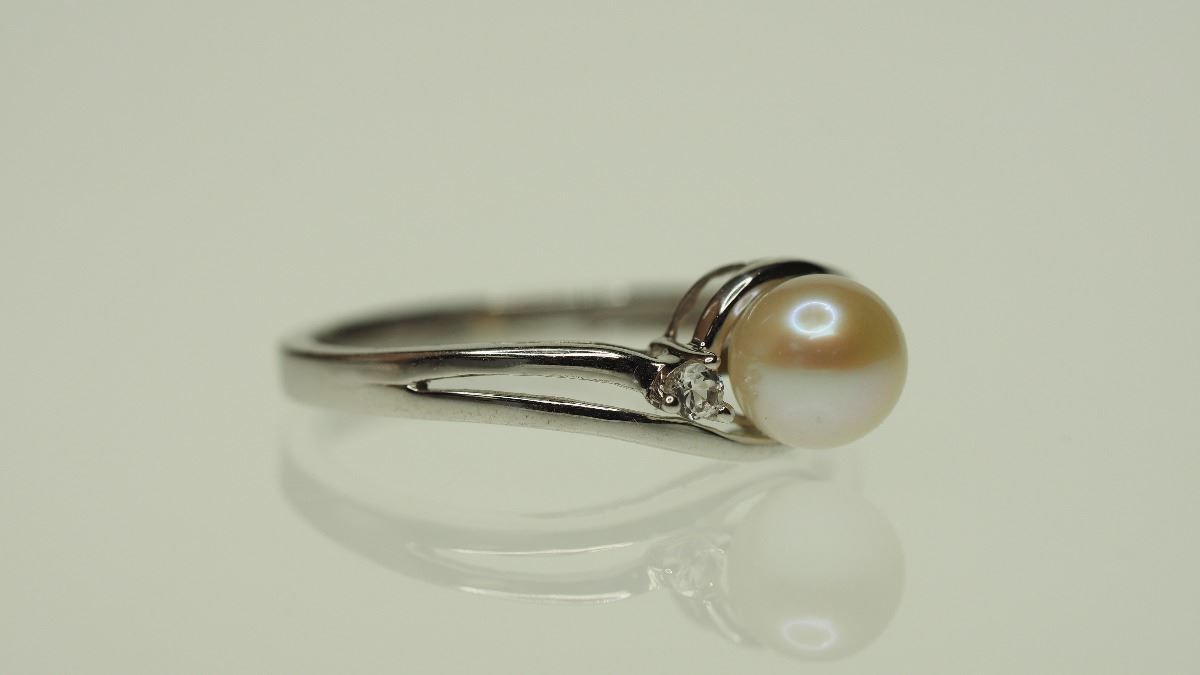 10K WHITE GOLD CULTURED PEARL & CUBIC ZIRCONIA RING. W/ COA- SUGGESTED REPLACEMENT VALUE $600.00
