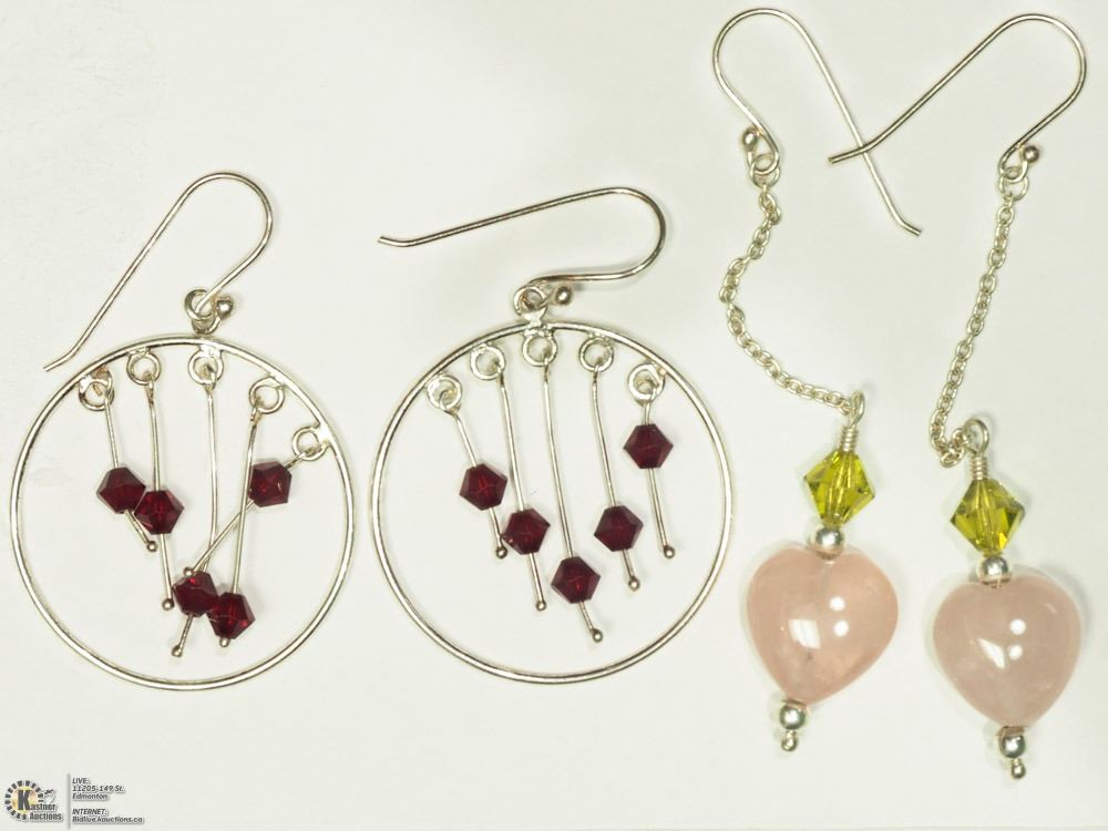 CRYSTAL EARRINGS - 10 - BA25 - 2 SETS OF STERLING SILVER ROSE QUARTZ AND CRYSTAL EARRINGS