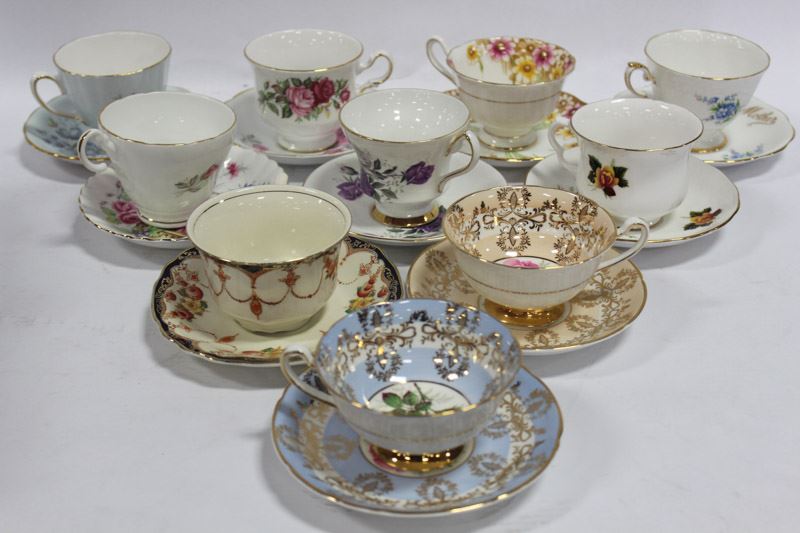 10 ASSORTED CUPS & SAUCERS MADE IN ENGLAND