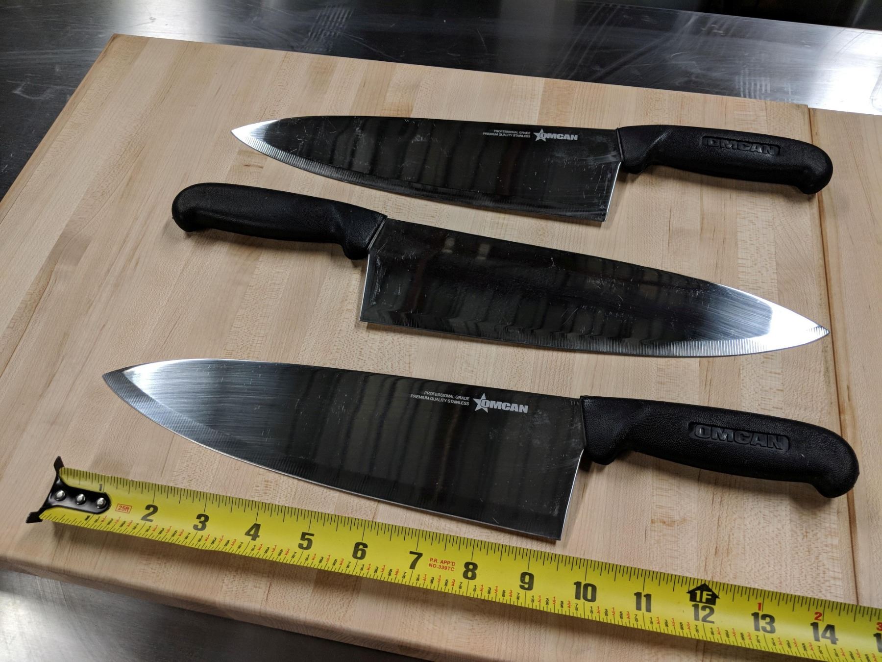 KW808 - NEW 10" BLACK HANDLE OMCAN MEDIUM BLADE COOK KNIVES, OMCAN 11973 - LOT OF 3
