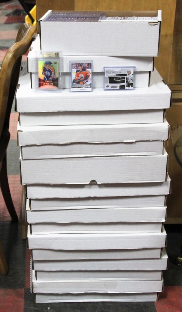FOOTBALL, BASEBALL, BASKETBALL, NON-SPORT - ROOKIE CARDS, INSERTS, JUMBO CARDS, HOLOGRAMS, JERSEYS, GRADED, AUTO ROOKIES, AUTO PATCH, AUTO ROOKIE STICKS. SOME NAMES INCL TOM BRADY, CONNOR MCDAVID, WAYNE GRETZKY, SIDNEY CROSBY, MARIO LEMIEUX, KOBE BRYANT, STEVE YZERMAN, ELIAS PETTERSON ROOKIE, CARTER HART ROOKIE, MIKKO RANTANEN ROOKIE. COLLECTIBLES