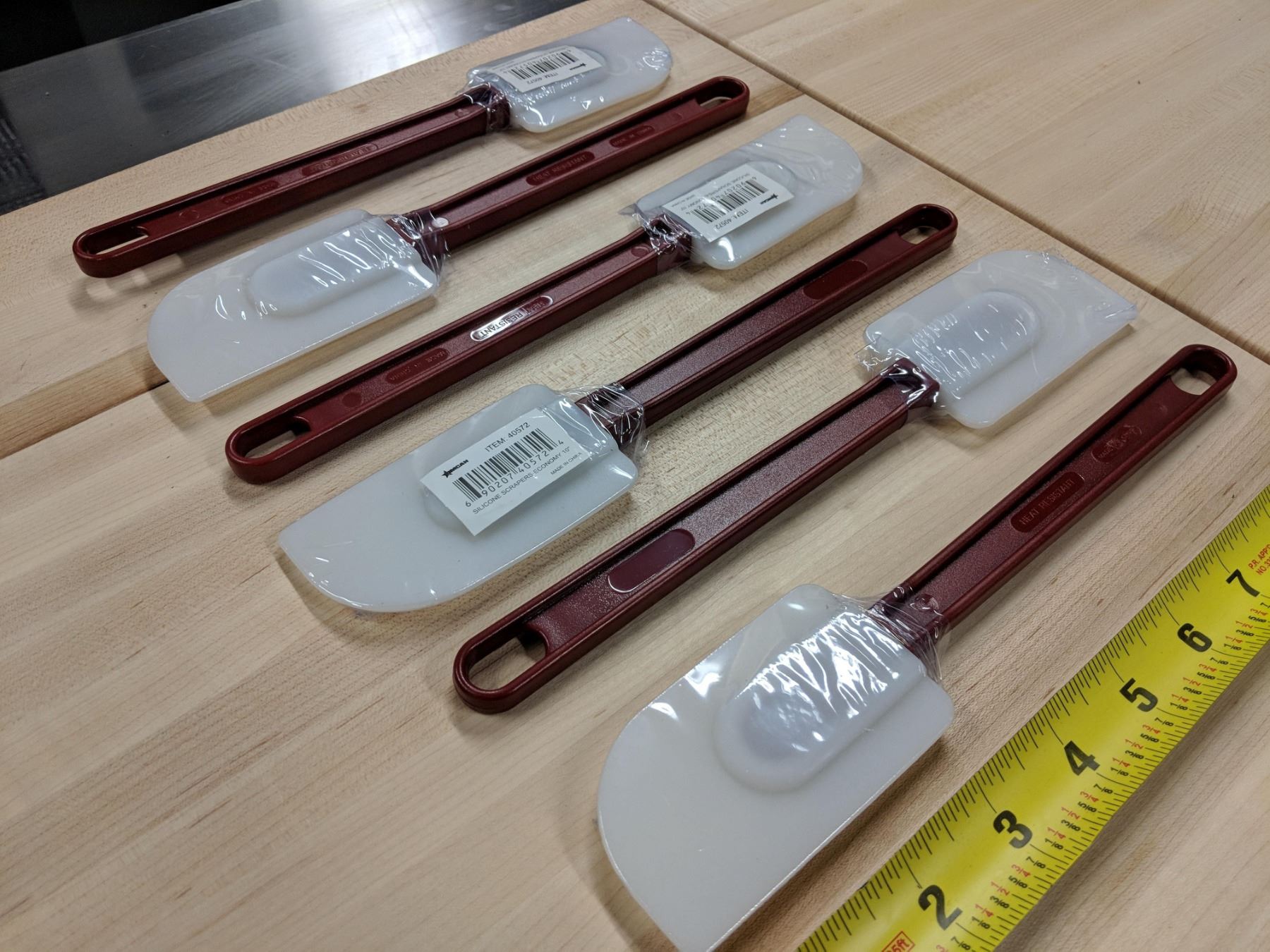 KW792 - NEW 10” SILICONE HIGH HEAT (260ºC) FLAT HEAD SPATULAS W/RED HANDLE, OMCAN 40572 - LOT OF 6