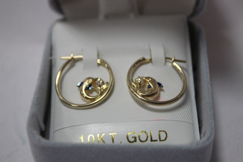 10 KT GOLD CUBIC ZIRCONIA DOLPHIN EARRINGS