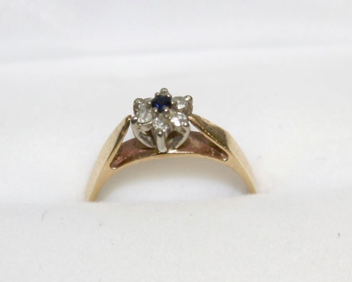 W/GENUINE CENTER SAPHIRE & 6 SURROUNDING DIAMONDS - SIZE 5