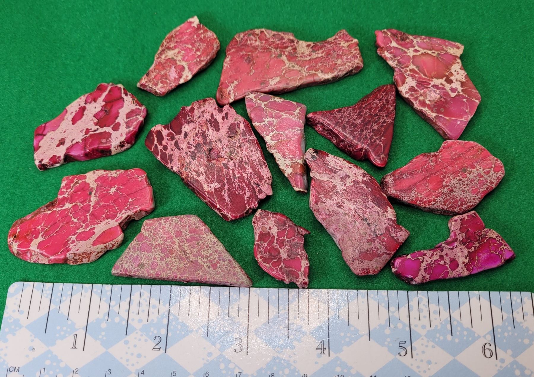 10)  LOT OF 13 RED AND PINK JASPER MINERAL
