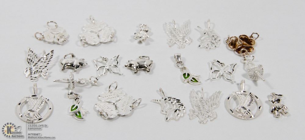 10 - BA29- LOT OF 28 STERLING SILVER DIAMOND CUT,BEST FRIENDS PENDANTS CAN SEPARATED INTO 3 PENDANTS (APP 25GM). JEWELRY.