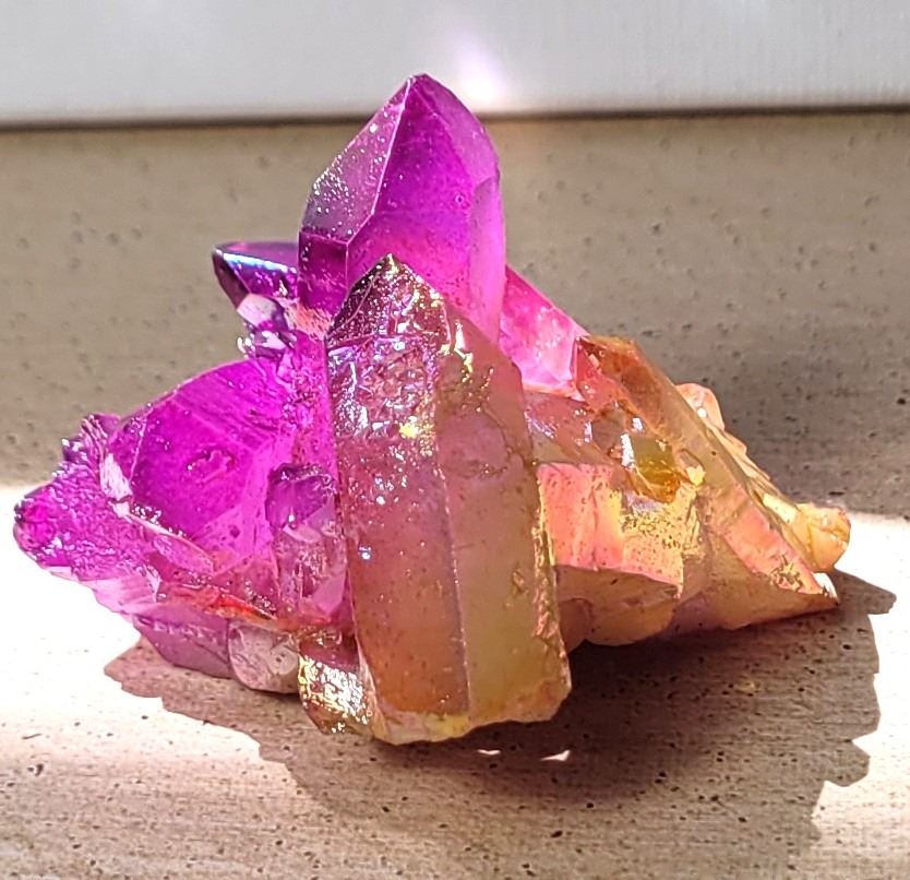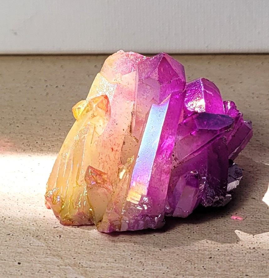 10) NATURAL AURA CRYSTAL PINK & YELLOW CLUSTER,
