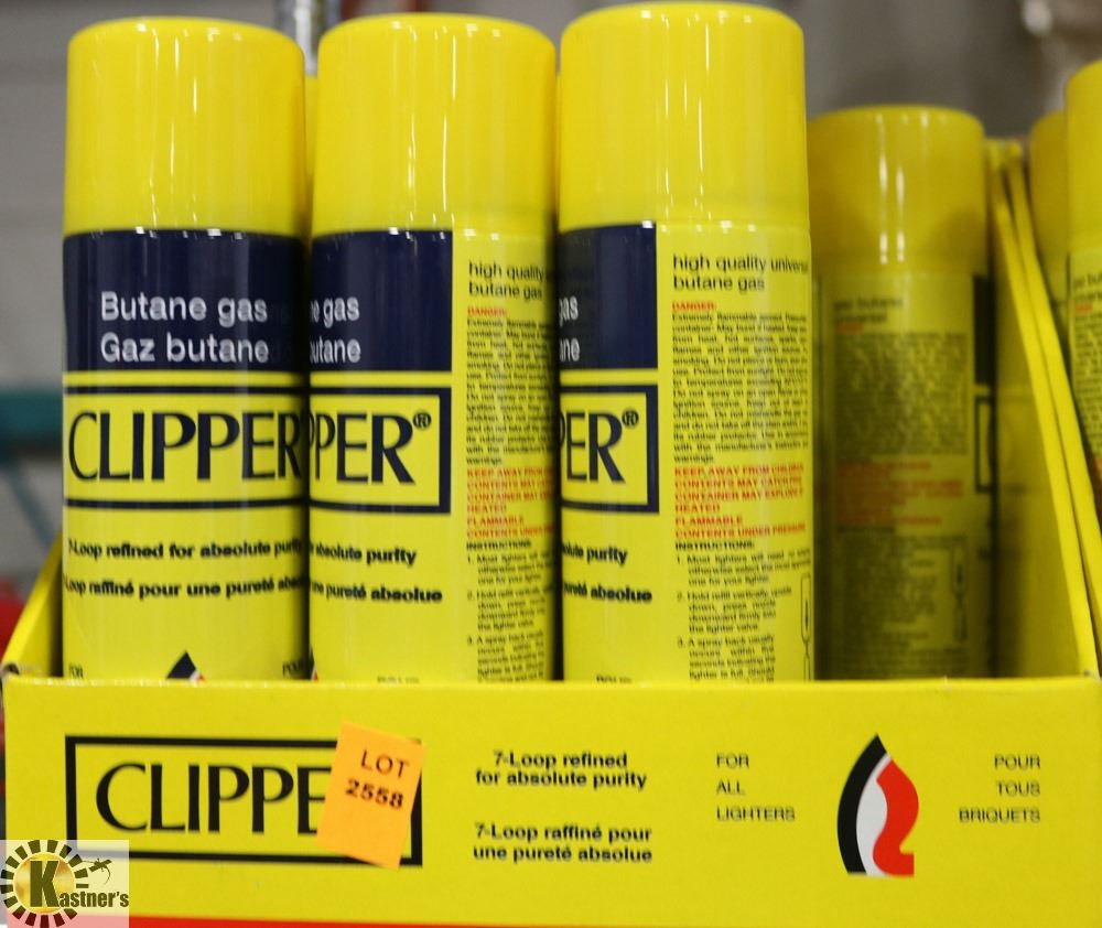 10 PK OF CLIPPER 140G CANS OF BUTANE GAS REFILLS.