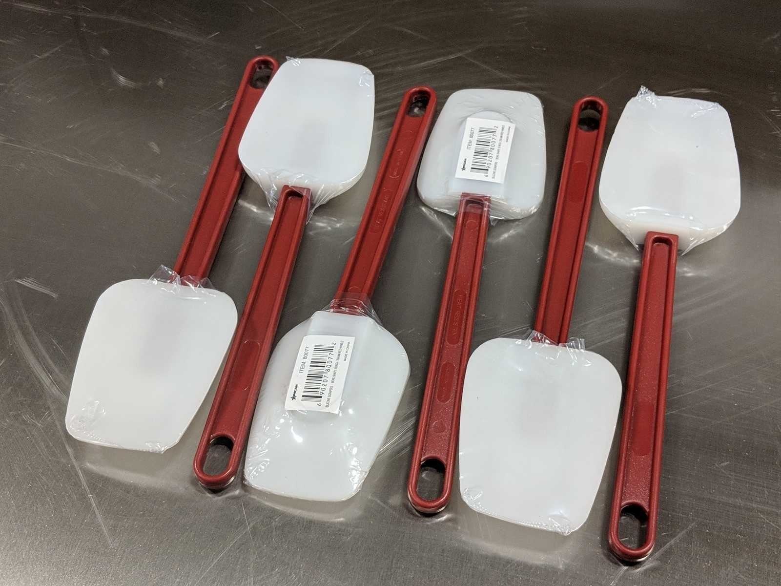 K NEW 10" SILICONE HIGH HEAT (260C) BOWL-SHAPED HEAD "SPOONULAS" W/RED HANDLE, OMCAN 80077 - LOT OF 6