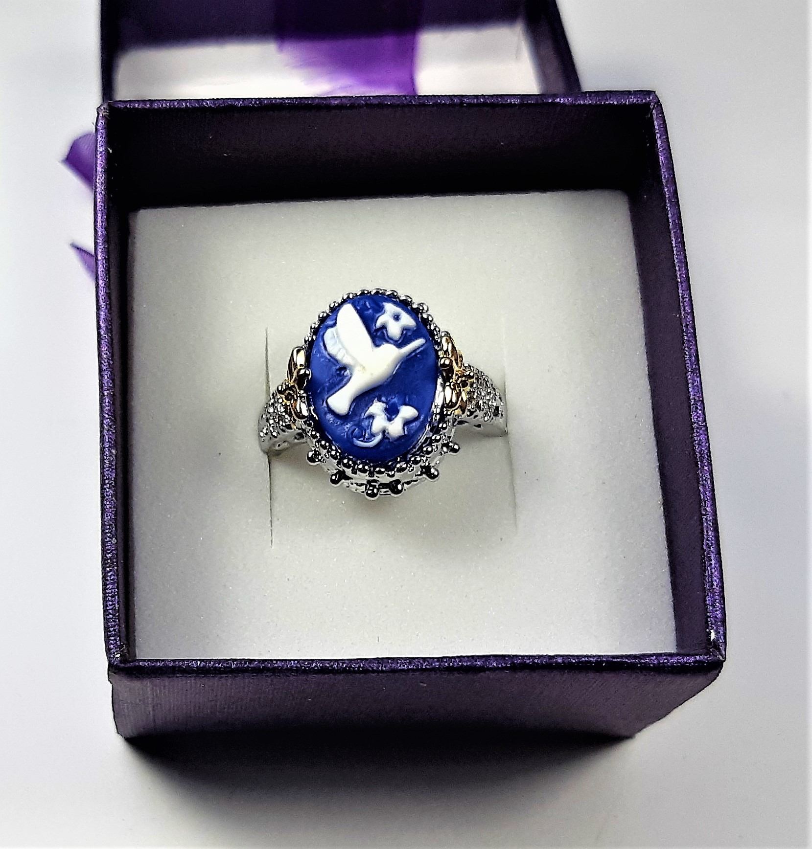 HUMMING BIRD & FLOWERS CAMEO RING. SIZE 8. JEWELRY