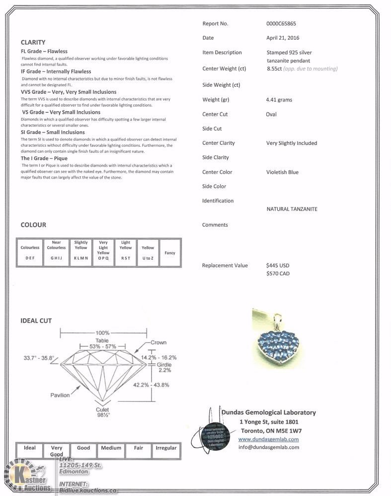10 - GS11; STERLING SILVER TANZANITE (8.55CT) HEART SHAPE PENDANT W/ COA - SUGGESTED REPLACEMENT VALUE $570.00