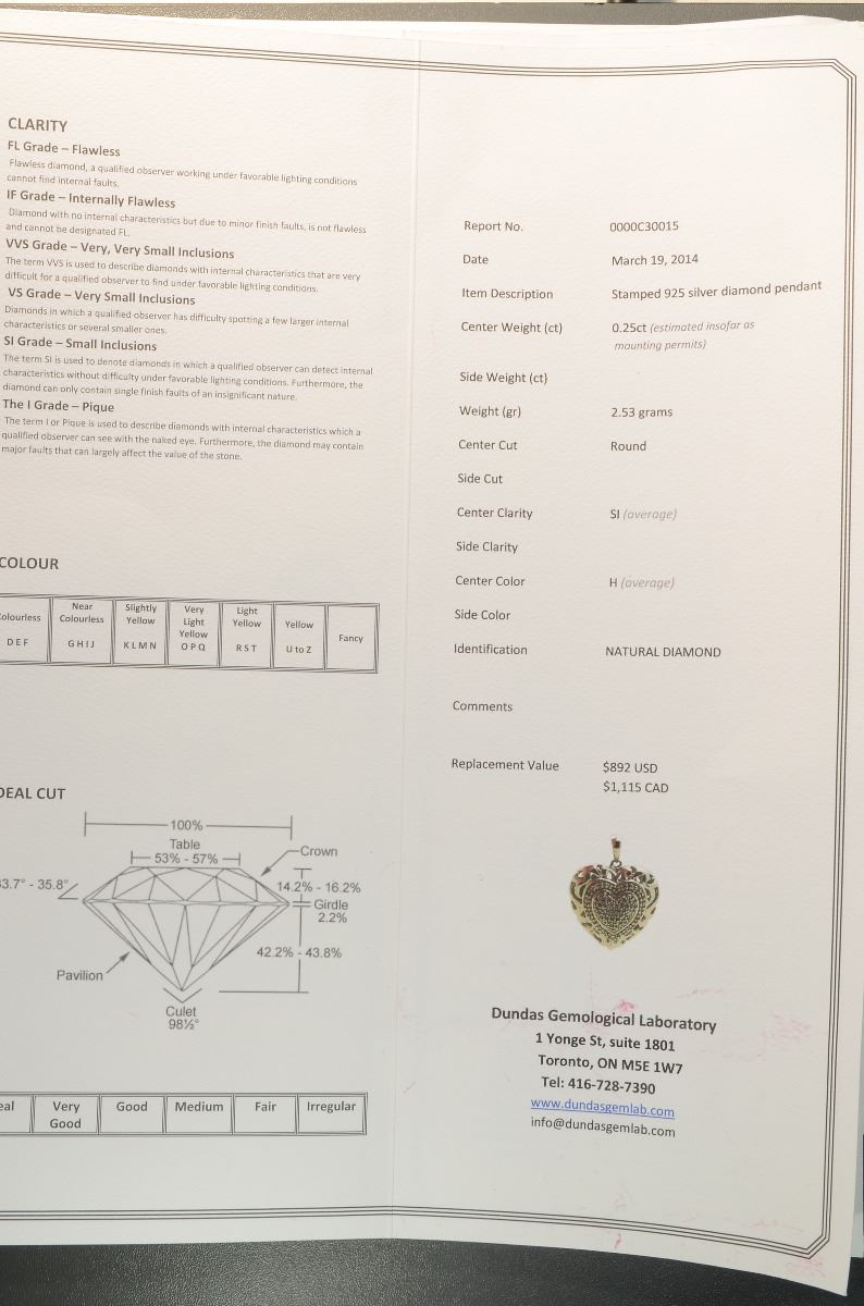 PENDANT W/ COA - SUGGESTED REPLACEMENT VALUE $1,115.00